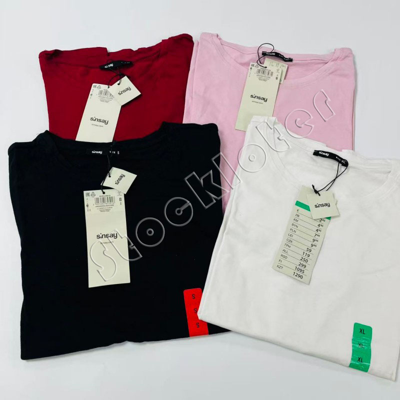 Famous European branded ladies basic round neck knitted cotton blouses t shirts tops with 131,151 pcs in stock, 4 solid colors with 7 sizes. High quality. Contact us for fantastic price.