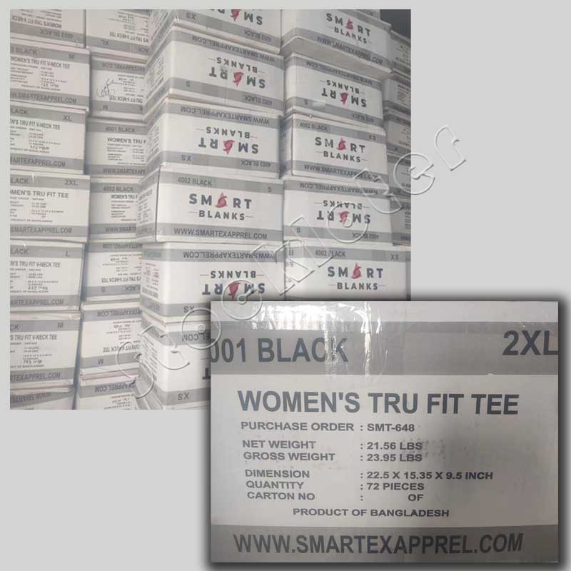 Ladies round neck blouses tops t shirts 14,832 pcs in stock, black color only with 5 sizes. Premium quality. Contact us for fantastic price.