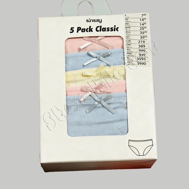 Famous Poland branded ladies cotton lingerie lace briefs 5pc packs underwear, 6 sizes in total. 5 pcs per pack, 2 pcs blue color, 2 pcs pink color and 1 pc yellow color. Contact us for competitive price.