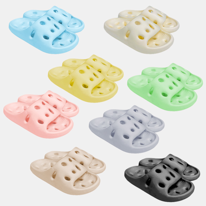 Running production bathroom swimming pool EVA slides slippers for men and women. The min order quantity 3,000 pairs per color and 1*40HQ per order. Custom colors available as buyer's request.