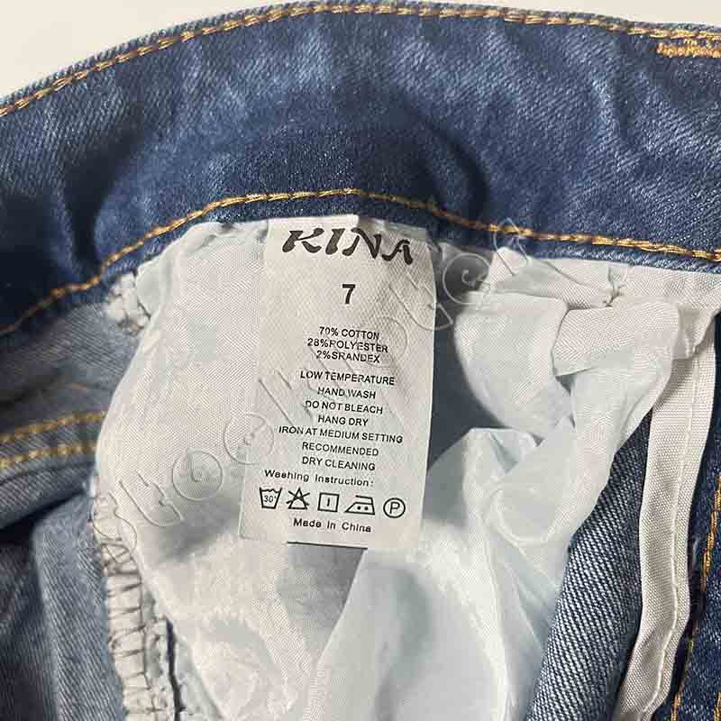 Fabric: Woven Denim fabric 70% Cotton 28% polyester 2% spandex 12 OZ