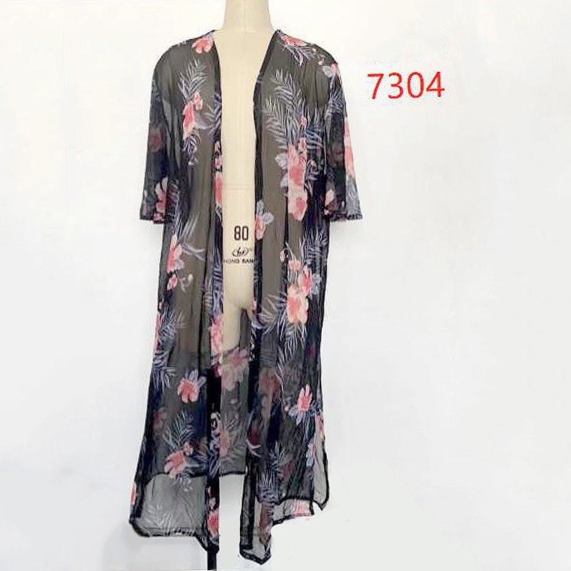 Clearance stock wholesale ladies sexy long sleeves front opening gauze mesh dresses 86,112 pcs in stock. There are 4 color patterns and 7 sizes from S to 3XL.